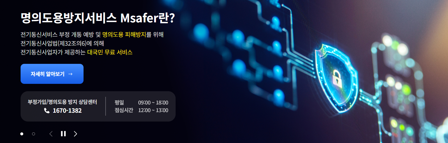 ① 명의도용방지서비스(Msafer) 신청 및 조회