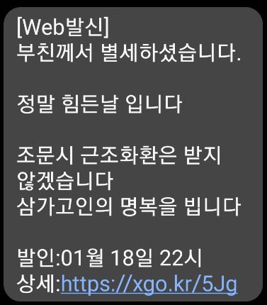 ③ 부고, 결혼, 돌잔치 등을 빙자한 URL 주소 포함된 문자 피싱사기